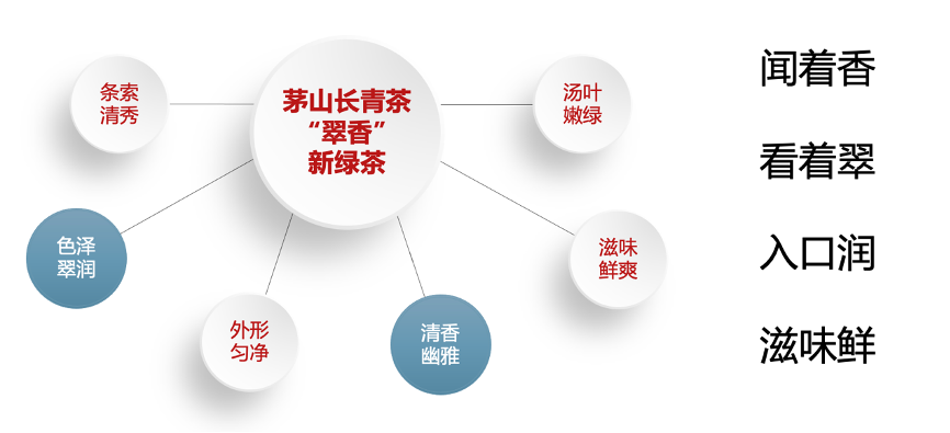 茅山長青茶,貴在搶占“翠香新綠茶”的品類定位,活化“茶葉新特性”,使茶味“聞著香”、“看著翠”、“入口潤”、“滋味鮮”新特性廣為人知,深入茶友心中,點亮“茶葉新品類”,創(chuàng)造“茶葉新特性”。