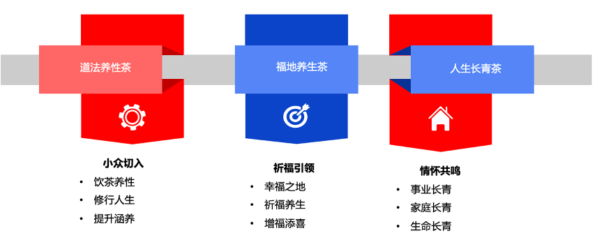 因此,韜慧咨詢項目組建議“茅山長青茶”依托“茅山之力”,主張“茅山問道 人生長青”,以“人文情懷”嫁接“茅山長青茶”,定位于“長青茶產(chǎn)業(yè)引領者”,全面整合區(qū)域茶葉資源,更融入句容“福地文化特色”,主張“問道福地 人生長青”,讓茅山長青茶更有“特色感”,讓其更有“人生意味”。