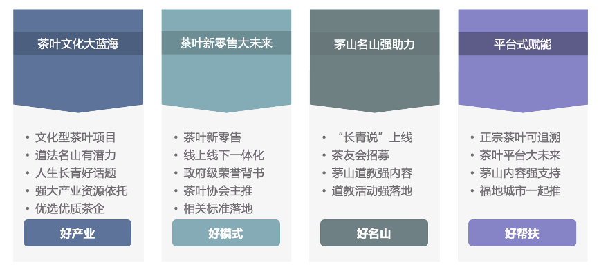 茅山長青茶,融入道教新文化,點亮句容新福地,更重要的是,更新“長青茶”特色,弘揚“道教文化”和“福地特色”,從小眾文化向“人生情懷”演進。