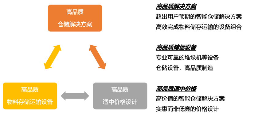 首先,“點亮方向”。持續點亮品牌的競爭優勢,避開“客戶沖突及價格戰”,全面點亮“新一代物料價值創造者”的品牌大旗,主張“高質價比”,做“智能倉儲質造者”。