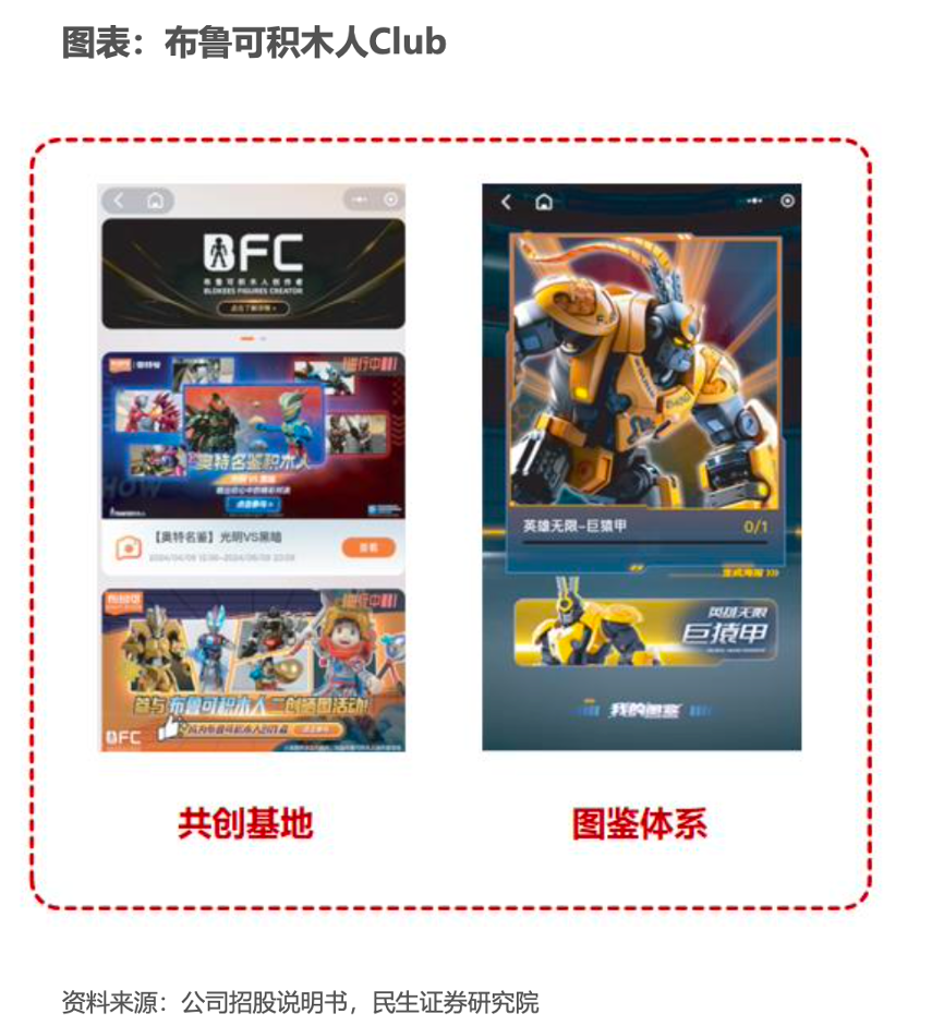 經(jīng)典案例:根據(jù)公司招股說(shuō)明書(shū)、民生證券研究院等綜合資訊表明,布魯可官方通過(guò)布魯可積木人Club中的「共創(chuàng)基地」功能舉辦投票活動(dòng),鼓勵(lì)消費(fèi)者參與新產(chǎn)品的開(kāi)發(fā)。得票最高的產(chǎn)品提案可能轉(zhuǎn)化為真正的產(chǎn)品。消費(fèi)者可通過(guò)掃描產(chǎn)品包裝上的二維碼及產(chǎn)品附帶的角色身份卡在布魯可積木人Club上注冊(cè)其產(chǎn)品。